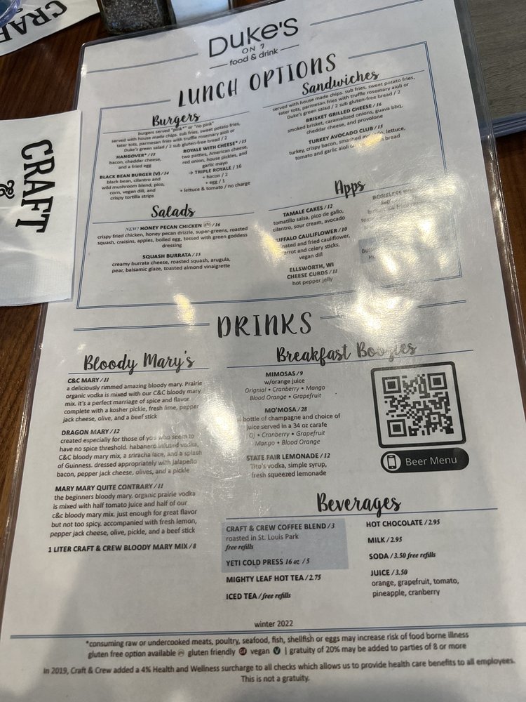 Duke's on 7 is a trendy New American restaurant located in Minnetonka, MN, offering a variety of amenities like outdoor seating, happy hour specials, and even a dog-friendly patio. The menu features dishes like the Prime Rib Dinner and the Super Feast, catering to different tastes and preferences. Customers have raved about the delicious food, friendly service, and cozy atmosphere, making it a must-visit spot in the area. The restaurant's attention to detail, from the food presentation to the outdoor igloos and dog menu, shows a commitment to providing a unique dining experience. If you're looking for a place with great burgers, cheese curds, and more, Duke's on 7 is the place to be. Make sure to stop by and savor the flavors while enjoying the fantastic ambiance.